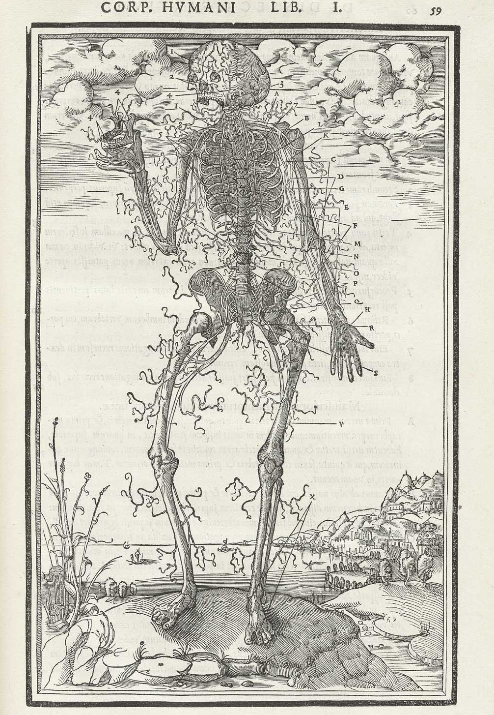 The first example comes from Charles Estienne's De dissectione partium corporis ("On the dissection of the parts of the human body"), which was printed in 1545 and which was very nearly the first truly extraordinary anatomy book, almost beating Vesalius to the punch, had it not been for some printing foibles. One of the illustrations that I'm focusing on is his dissection of nerves, the spindly, flowing ones being cutaneous nerves that supply skin sensation (thanks to Alex Baker for the correction!) , which look for all the world to be beautiful dendritical elements being blown by a breeze, maypole wrappings come undone, celebratory flags...something beyond tendons. I know that the artist and designer are simply trying to show the reader their structure and so it makes sense to display them like that, but they have a certain classical beauty in their representation that seems far beyond what might be considered necessary for the task at hand.