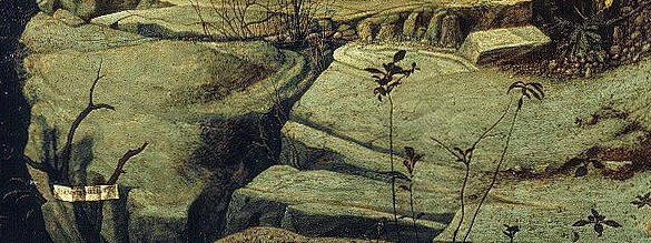 This uniqueness extends too into the geological strata foreground of Mantegna's Madonna of the Quarry, or rather to the shelf of ground on which the Madonna stands.