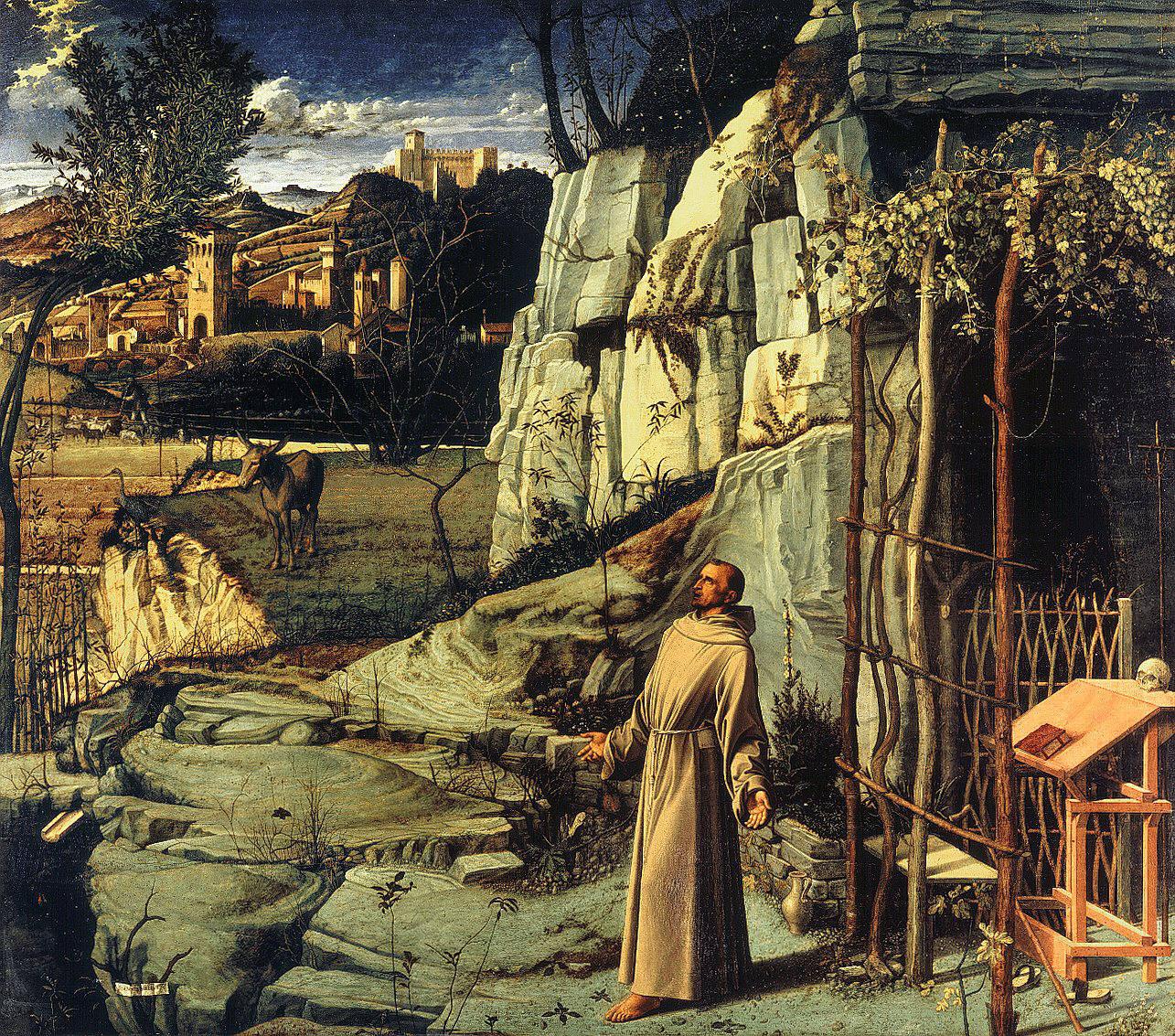 This sparseness is almost there but not quite so in Bellini's Stigmatization of St. Francis, which is in general a very dense composition with many competing elements, perhaps making the foreground weeds a little more singular: