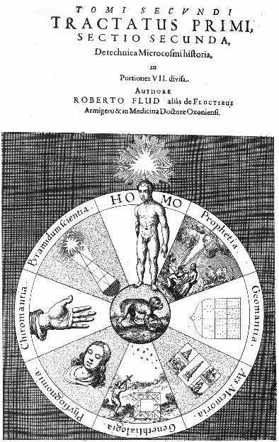 Robert Fludd’s (1574-1637), title page for his Utriusque Cosmi . . . Historia (1617) features this complicated astrological wheel with a Vitruvian-man-like image at the vortex of the imaged pulls and pushes of the cosmos. In addition to everything else, real and imagined, Rosicrucianism and astrology and puffy-birds, Fludd, who was an English physician, delved deeply into the real stuff of the world in this book in addition to all of the other make-believe--optics, the musical intervals, perspective drawing, hydraulic engineering, construction of lifting machines, military engineering and many other interesting, physical science topics. But this drawing, right there on the title page, reveals Fludd’s real interests and shows what governs what he does. Everything else, the math and and the physics, services this need. Of course the image is beautiful, which is why it is here, but it is also a deeply personal, exploitative, cover-all for the things that Fludd *wanted* to find.