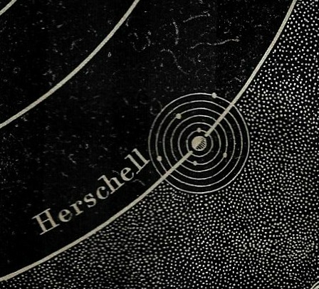 If there was an equal weight assigned to white and black, the white in the corner sections may well outweigh the black, which also happens to show the planet "Herschell". This was the first planet discovered since antiquity, and was done so by the Hannoverian Brit Friedrich Herschel, who found it in 1781 and who lived with its immediate fame for another 41 years until his death in 1822. Herschel, an enormous astronomical talent who also played and composed, proposed the planet be named in fidelity "Georgium Sidus" after George III, though that name didn't stay on the planet longer than a quick shadow. The French astronomer Lalande (who could probably not for genetic /national reasons use the name for George) suggested the planet be named for the discoverer, "Herschell1", which really wasn't that terribly popular though it did last for five or six decades, succumbing finally to Bode's suggestion of "Uranus".