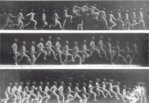 I think that these were monumentally combative images showing humans in a radical, previously unknown way, much like the moving-through-space-and-time photographs of the somewhat forgotten Etienne Marey, who in the 1870's created what was essentially the world's first "slow motion" device. One iteration of Marey's apparatus was basically a long series of ganged cameras recording a motion for a