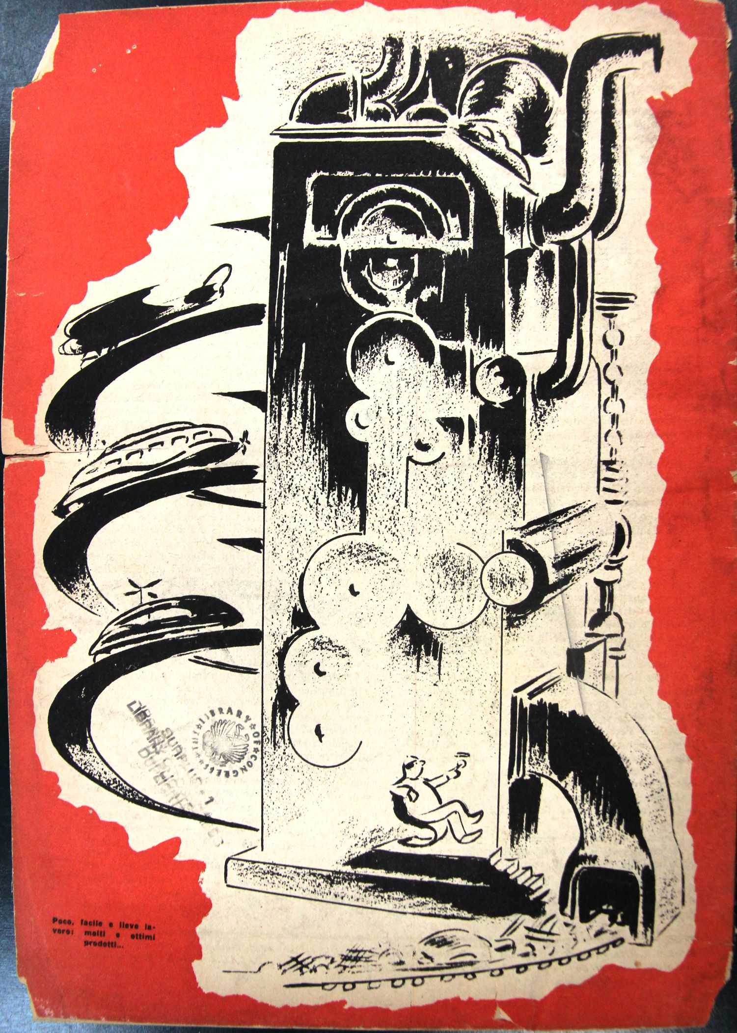 1. Swift describes the machine so: “... Every one knew how laborious the usual method is of attaining to arts and sciences; whereas, by his contrivance, the most ignorant person, at a reasonable charge, and with a little bodily labour, might write books in philosophy, poetry, politics, laws, mathematics, and theology, without the least assistance from genius or study.” He then led me to the frame, about the sides, whereof all his pupils stood in ranks. It was twenty feet square, placed in the middle of the room. The superfices was composed of several bits of wood, about the bigness of a die, but some larger than others. They were all linked together by slender wires. These bits of wood were covered, on every square, with paper pasted on them; and on these papers were written all the words of their language, in their several moods, tenses, and declensions; but without any order. The professor then desired me “to observe; for he was going to set his engine at work.” The pupils, at his command, took each of them hold of an iron handle, whereof there were forty fixed round the edges of the frame; and giving them a sudden turn, the whole disposition of the words was entirely changed. He then commanded six-and-thirty of the lads, to read the several lines softly, as they appeared upon the frame; and where they found three or four words together that might make part of a sentence, they dictated to the four remaining boys, who were scribes. This work was repeated three or four times, and at every turn, the engine was so contrived, that the words shifted into new places, as the square bits of wood moved upside down."