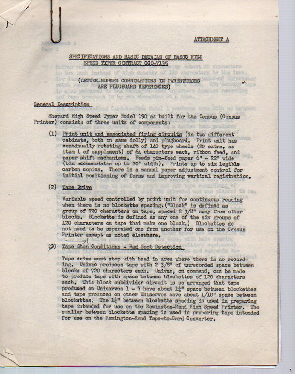 This is a group of materials from the estate of Ralph Mullendore (see below), an early and integral team member of the electronic computation section of the U.S. Bureau of the Census, who was responsible for the installation and maintenance of the UNIVAC there, at Census. The papers are on their way to a history of computer science section at the library at North Carolina State University where they will hopefully be enjoyed by any and all who have an interest in the early stages of the maintenance and tinkerings on America's first commercial computer. It should be remembered that the hands of the man who wrote all of these notes were the same hands that worked on this monumentally important machine, the first of its kind in existence.