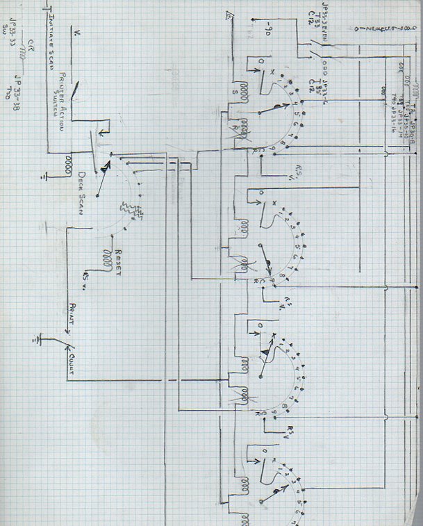 The following are working block diagrams of sections of the UNIVAC, produced by some sort of early offset process in 1950, slightly before the computer came to its working life. I have a number of sections of the computer represented in this way, but not the entire machine--but what is here may be of interest to historians of computer science.