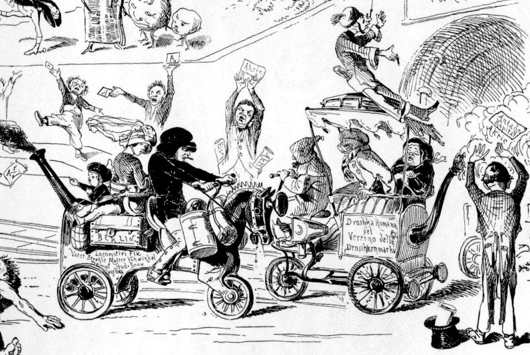 The main sensation here is speed, though I would not say it was democratic--the means to go to Dublin in your balloon "for an appetite" and return later in the day would have been fantastic to the 1834 reader trying to imagine doing such a thing on such a whim, with a newspaper in your lap, but certainly it would be available to the leisurely class.
