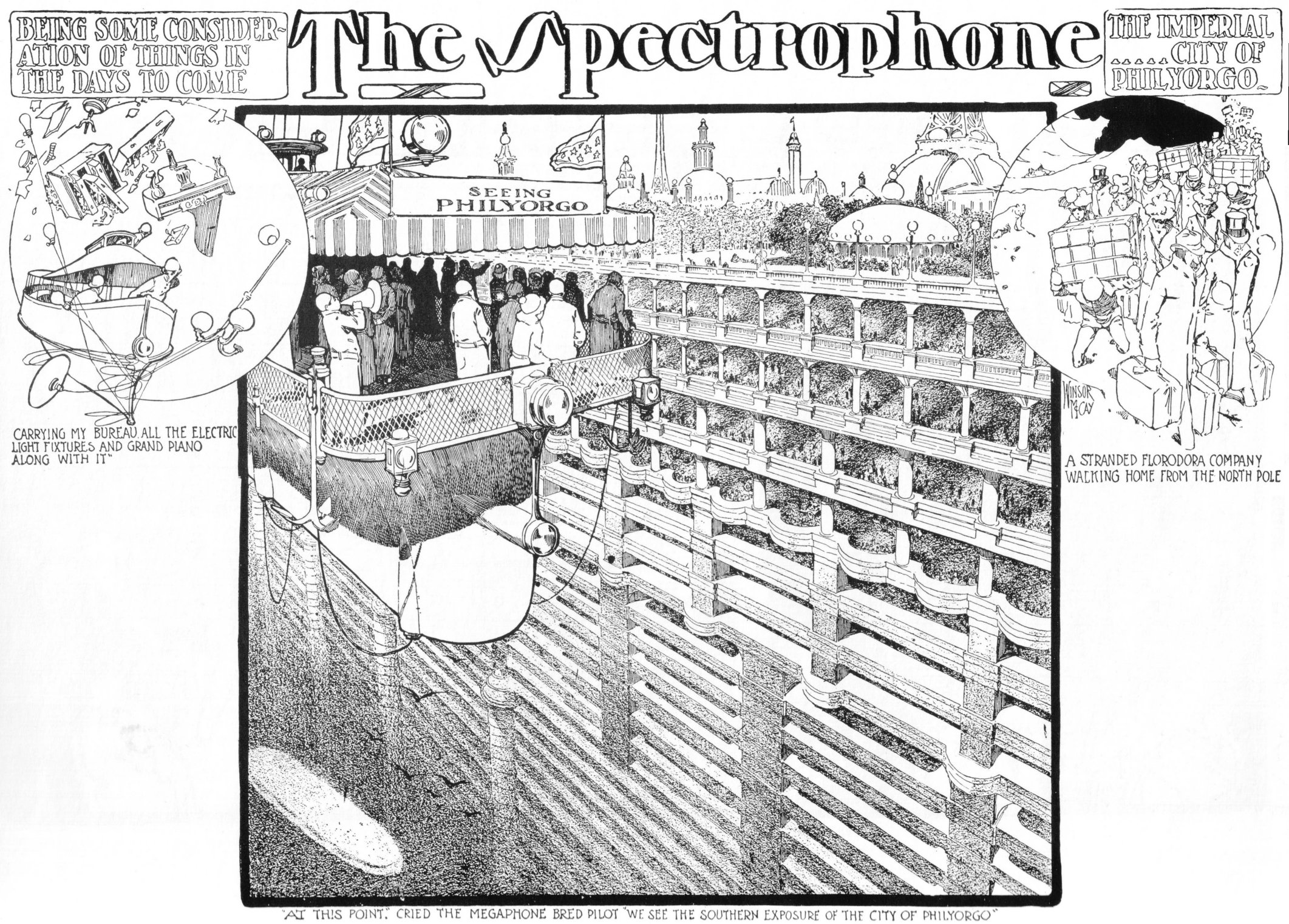 There was also an idea for balloonic communication, as one man in a balloon shouts to another to "give me a call by the first balloon," meaning perhaps a communication device, or a balloon-delivered letter.