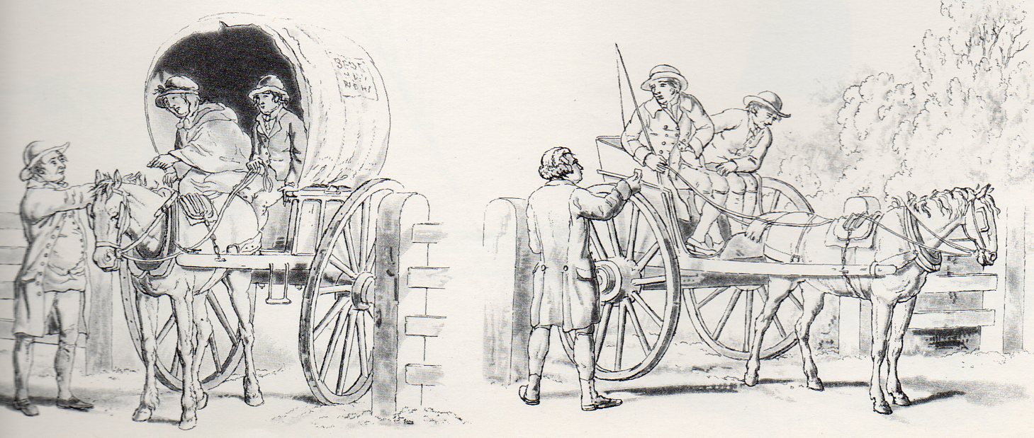 Without good roads you can’t get your produced goods to a market outside of the one you’re in, isolating chances for growth and development. If you have a good serviceable, dependable road to transport your stuff, then you have an expanded market; that means you can sell more, produce more, and theoretically charge less, which means you expand your consumer base, and on and on. But that means you have to be able t depend on your road. And a good road needs to be paid for. And one of the chief ways of funding these early roads was by a toll, which called for a toll house and a little gate. And a person to collect the money. Merchants figured out very quickly that it was much cheaper to pay a toll to use a good road than it was to use a bad road for free and have to depend on the graces that it be maintained; and since the graces weren’t kind, there would be all sorts of repairs necessary because of the poor road: harnesses, wheels, wagons, horses, and the like, not to mention food and such that could spoil along the way, or goods damaged in transport.