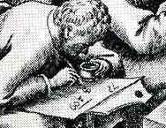 I started out in this post to write about the scholar pictured in Andrew Borde's book, The Breuiary of Healthe, for all maner of syckenesses and diseaes, Expressynge the obscure terms of Greke, Araby, Latyn, and Barbary, in Engluish concernying Phisicke and Chierurgerie...., which was printed in London in 1556. Underneath this rather long title is perhaps the earliest "modern" work on hygiene--or at least (in a real test of qualifications) it was the first book written by a medical man on hygiene that was originally written and published in English. In its way it is a wonderful book, being a compendium, really, of 384 short chapters on the this-and-that of medicine, all alphabetically arranged, which made it a simpler book to compose than a full treatise on the subject arranged in a medically-logical way. But what I liked in it was the contrasting image of the scholar, which to me is the very picture of ennui, laid side-by-side with the chief element by which this book is probably best remembered, which is "Myrth is one of the chiefest thygnes in physicke" (or "humor is the best medicine"). Borde's scholar may not be taking his own medicine, here.