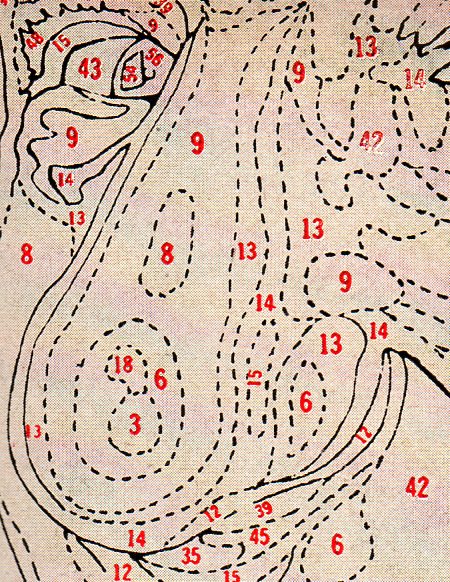 The ingenious part of this idea was that each one of the cards with the descriptive characteristic were numbered. In this way then if one police station needed to communication the description of a suspect to another jurisdiction 100 miles away they would simply use a series of numbers. Each police station would own identical sets of these cards, so that all the receiving station would need to do would be to select the descriptive cards at their end and start placing them in order on their three head outlines and after a short interval a picture of the suspect would appear. The most important aspect of this was that there was a common denominator, so "pudgy split lip" would appear the same to the sending and receiving stations. Absent any other means of communicating images and their descriptions instantly in the pre-facsimile days this was--or would have been--a significant development.