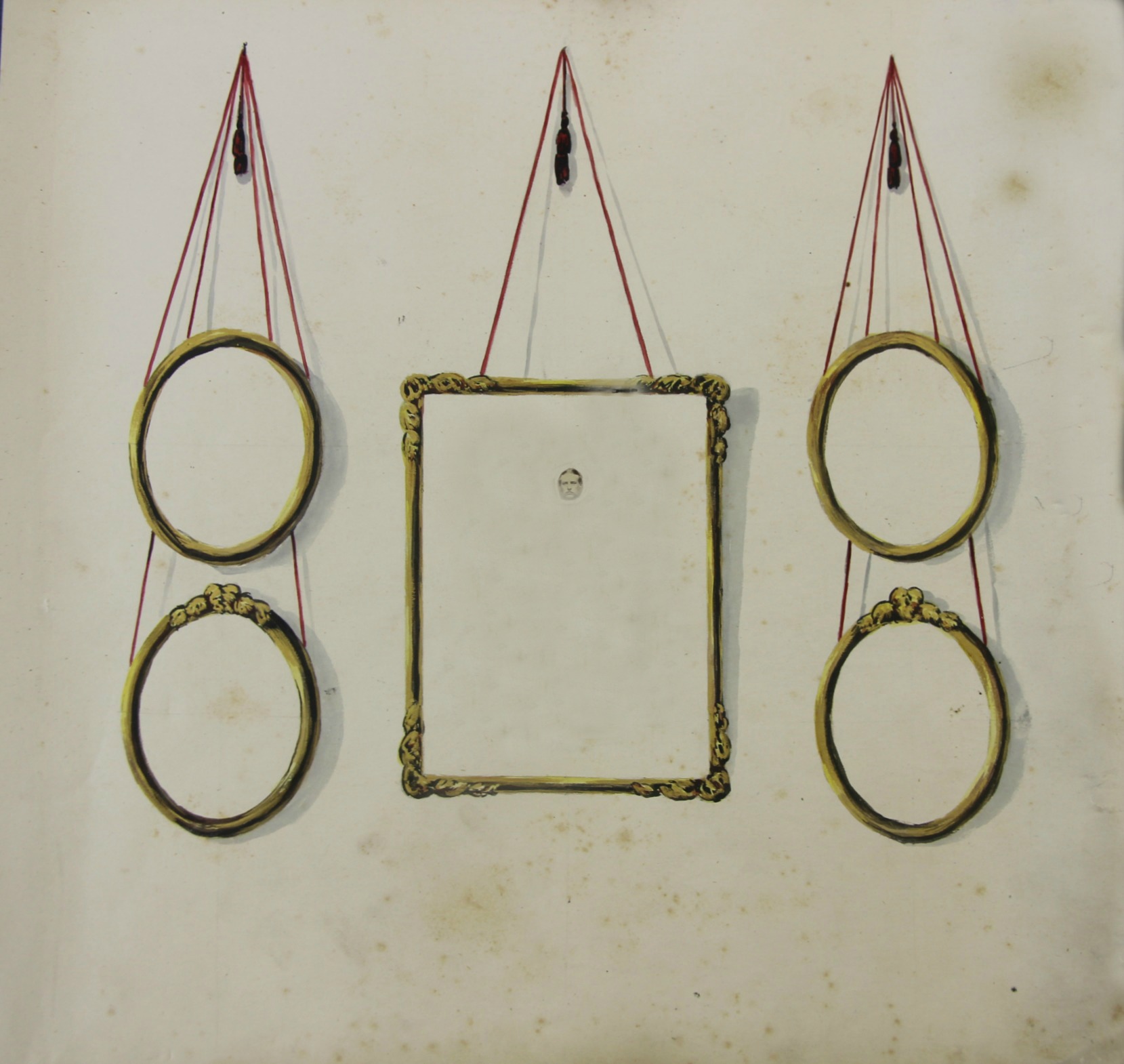 An interesting series of frames and the empty and non-images in them was drawn by Forster in notes for his biography some time in 1859. This was Dickens' "memory palace" card; it was meant to be shown to the person constructing the image of the suspect as an aid exciting memory in placing imagined portraits in an empty frame, "a cup to hold the tea" as Dickens once remarked.