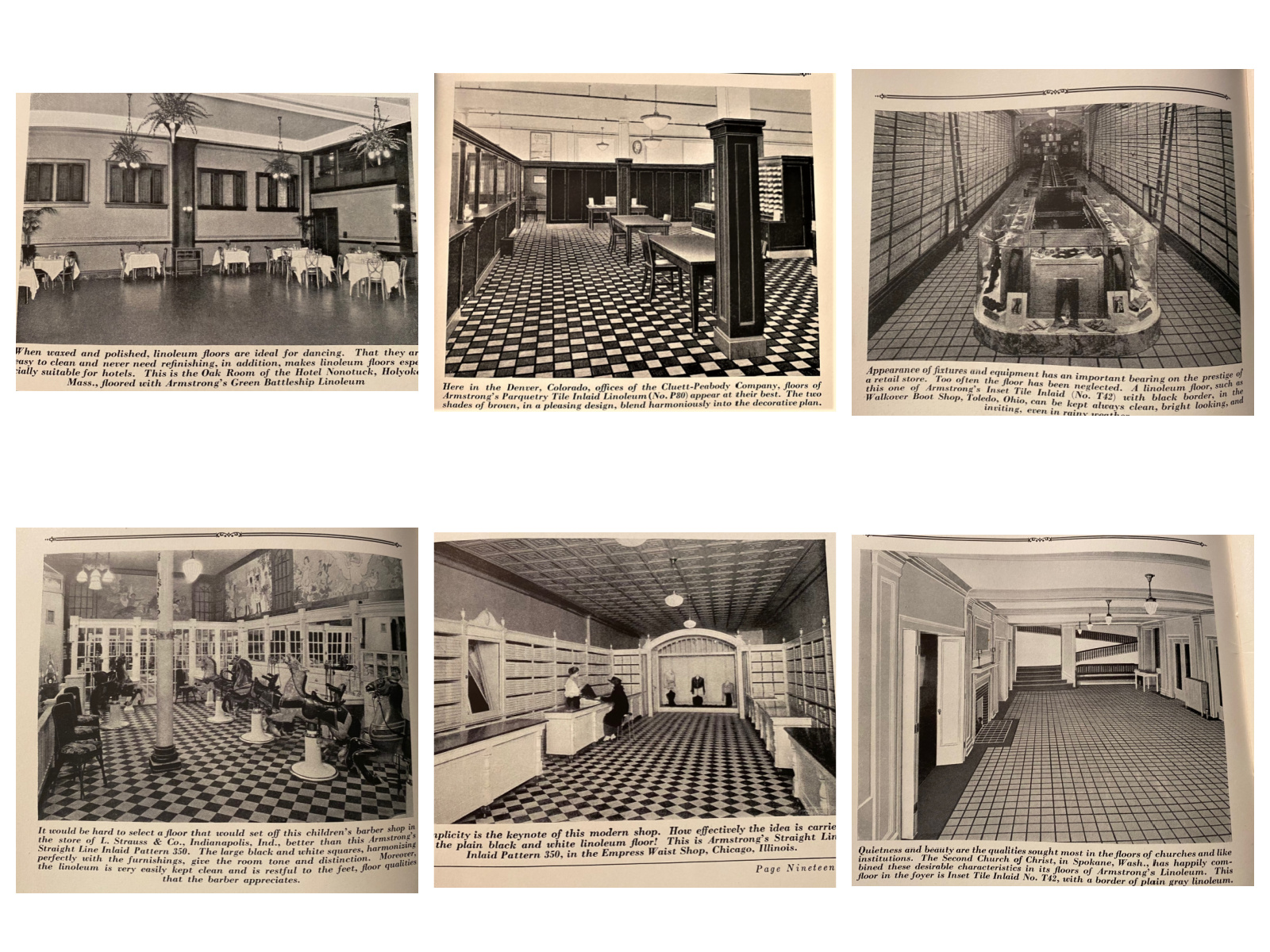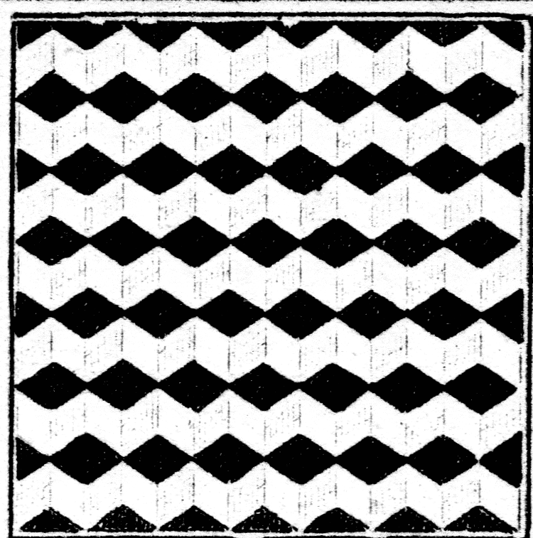 This is a pretty unassuming pamphlet, judging from outward appearances (see below)1. It is an advertising promotional published in 1924 for Armstrong Cork Company of Lancaster (PA) pushing their extensive selection of linoleum flooring. (Linoleum, by the way, was created in the 1850s and was a constant source for durable and inexpensive floor covering for about 100 years...the first linoleum factory established in the U.S. was on Staten Island, NYC, with the company settled into a town they called Linoleumville, which was later renamed "Travis". Anyway, I digress...) I'm drawing attention to the publication because of the illustrations, which are no doubt standard for the time and made to be complimentary, though they look a lot different from their intentions looking at them today--at least to me. There's a LOT of distortion in the perspective, some of it from the camera angle and some of it, well, from the highly repetitious designs in the flooring, as you can see here: