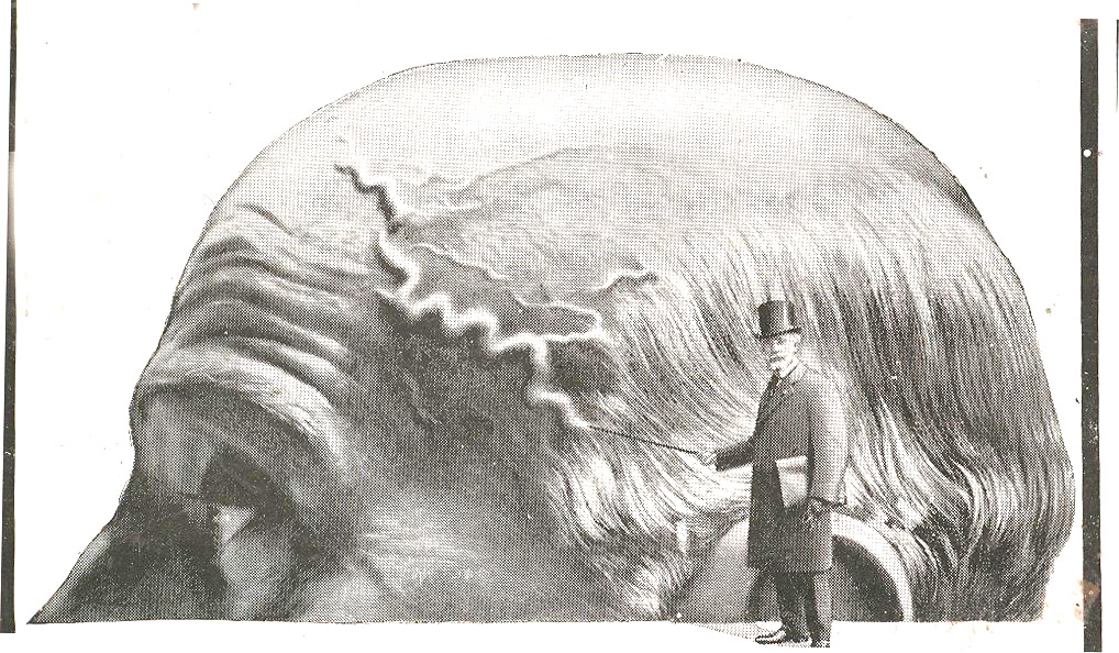 This pictograph is meant to be a non-linguisitc, universally-understood warning to future generations that the ground they are standing on is above a nuclear waste storage site. The plan was that nuke waste would be solidified and buried in rock hundreds of meters below the surface in an effort to keep in line with governmental policy of waste disposal2. The pictograph relates to the restricting of future human activities part of the title of the work in question–that is, folks in the future who might muck around, drilling, into the nuclear waste site. This pictograph tells them why they shouldn’t do so, because of all of the terrifically lethal mojo underground.