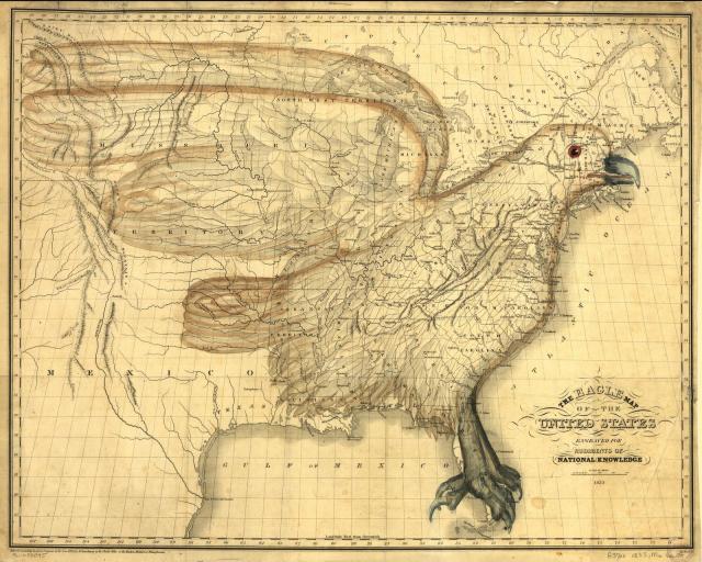 Next is a great and rare classic, I.W. Moore's 1833 map incorporating an eagle into the design of the early Republic, from the Library of Congress (here):
