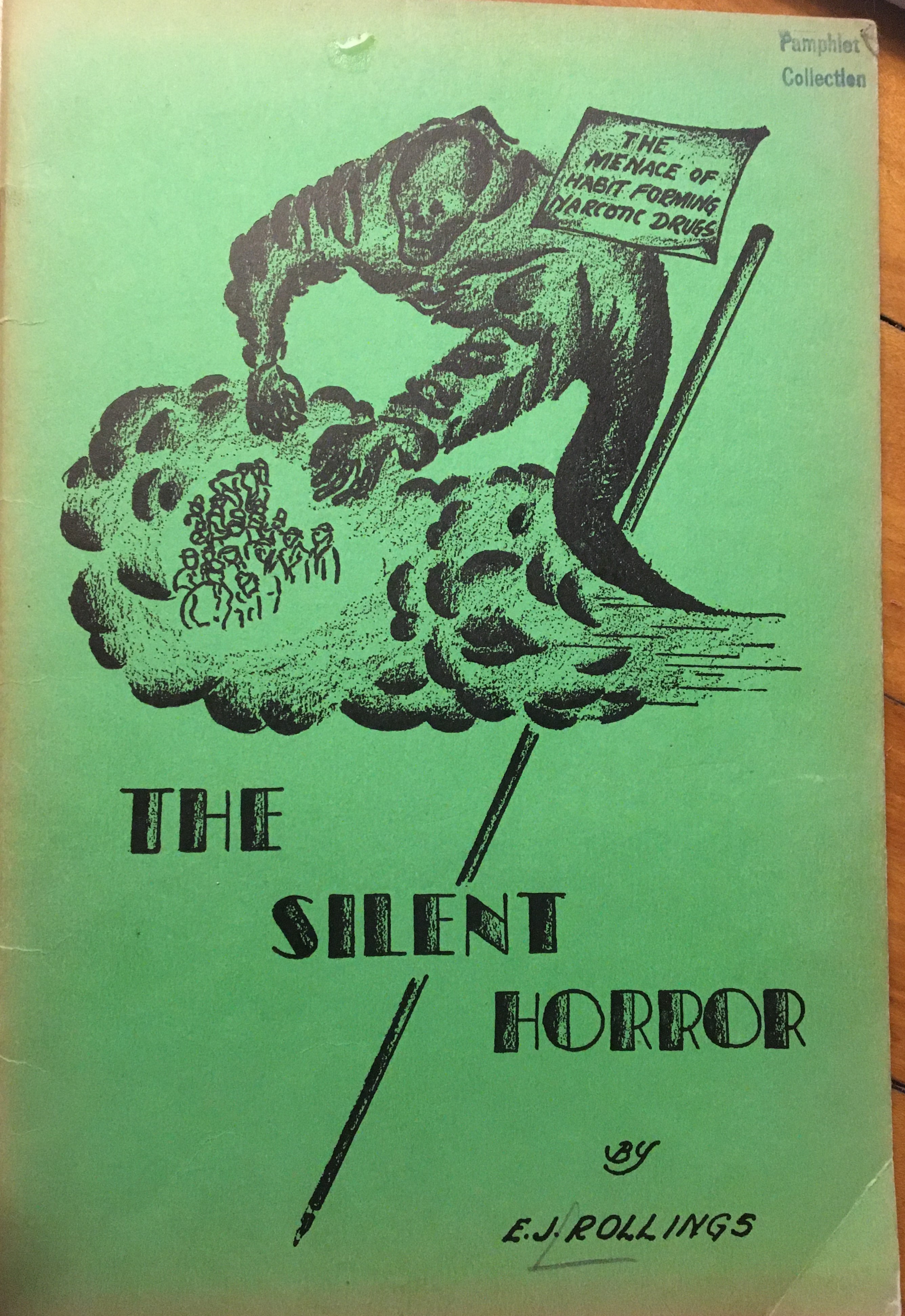 Elmer James Rollings' The Silent Horror (1939) is a two-fisted introduction and appraisal of narcotics published in Wichita, Kansas by the Defender Press, 1939. (It also seems that this pamphlet is pretty rare--there are no copies of the work found in WorldCat.)