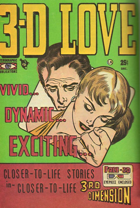 stand was straight into the heart of the common reader, filling them with the hope/fear of their two-dimensional explorations into what they called their 3-D 3D 3.D Three Dee world, selling "closer-to-life stories in closer-to-life 3rd Dimension".