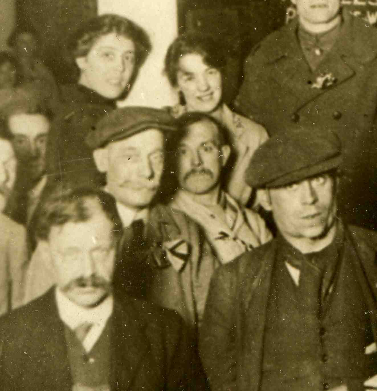 you look closely you can find some Chinese laborers in among the crowd and also