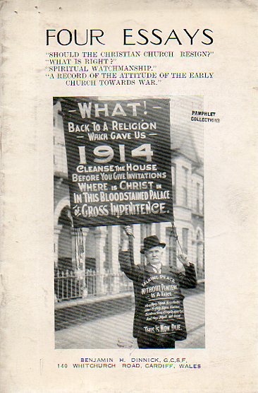 I found this rather, um, provocative pamphlet that asks, right up front on the cover of the thing, "Should the Christian Church Resign?" The author, who I think is the man holding the placard on the cover, is Benjamin H. Dinnick (Cardiff, Wales) who published the work in the 1930's.