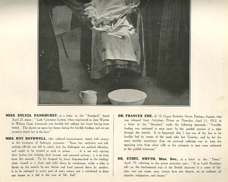 In January 1910 the Illustrated London News (perhaps sympathetically) reviewed the case of the forced feeding of a leading female suffragist--very forced, very forcible, feeding-tube-up-the-nose-and-into-the-stomach